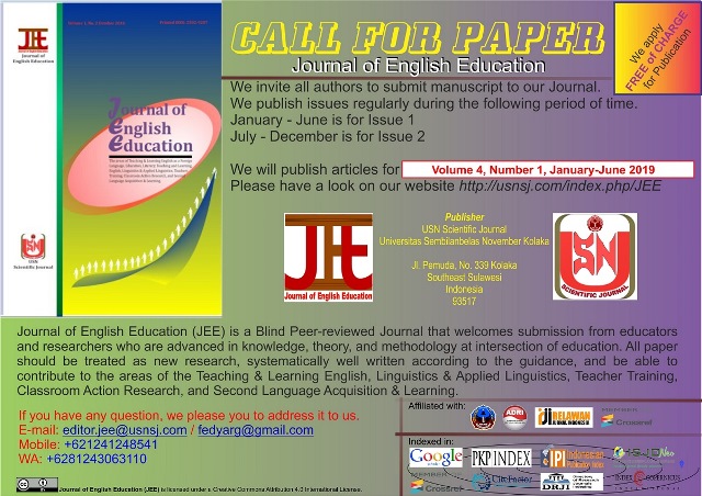 ![]() We invite Authors and Researchers to publish with us for Vol. 4, No. 1, January - June 2019. We please you to have a look at the Focus and Scope, Malpractice Statement, Author's Ethic Publication, and Author's Guideline prior to submission. Best regards, Fernandes Arung Editor in Chief |
